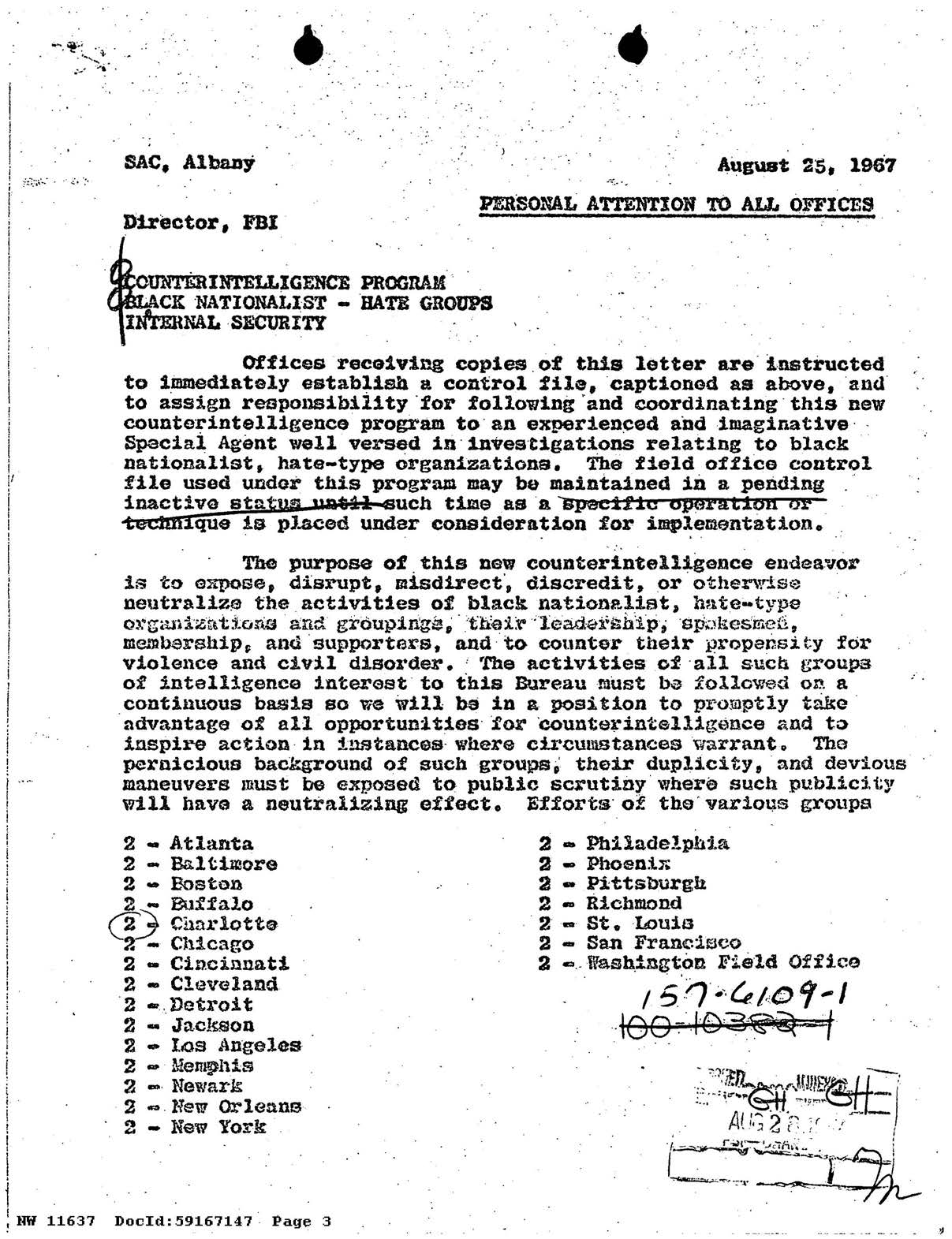 “The Purpose of this new counterintelligence endeavor is to expose, disrupt, misdirect, or otherwise neutralize the activities of black nationalists, the-type organizations and groupings."