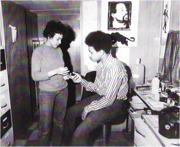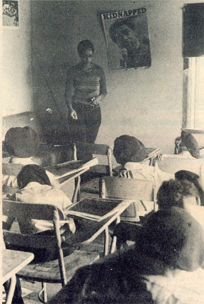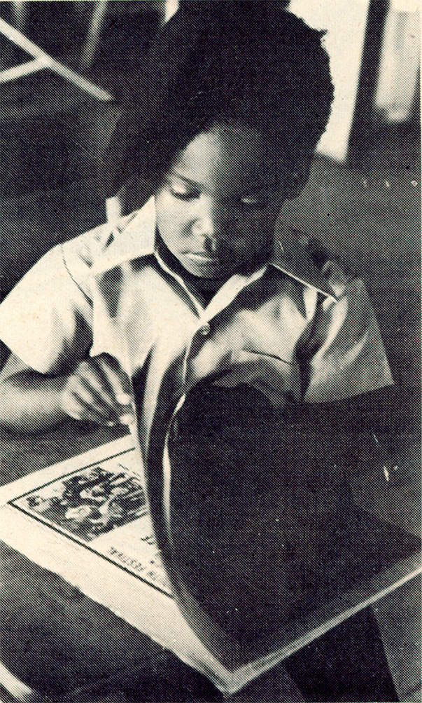 "Students at the Black Panther Party's Intercommunal Youth Institute, the organization's first full-time elementary school: With earlier, smaller-scale iterations in Berkeley and later San Francisco, the Party opened its first full-time liberation school in Oakland in 1971, naming it the Intercommunal Youth Institute (IYI). Under the directorship of Brenda Bay, and later, Ericka Huggins, the IYI facilitated classes for twenty-eight enrollees in its first year, most of whom came from Panther families."