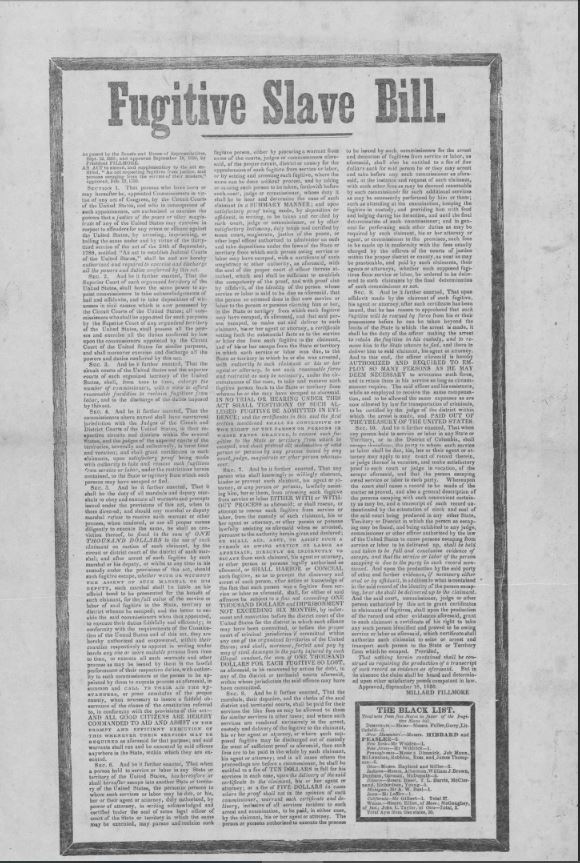 The Fugitive Slave Bill was passed in 1850 to recapture and punish runaway slaves (Library of Congress).