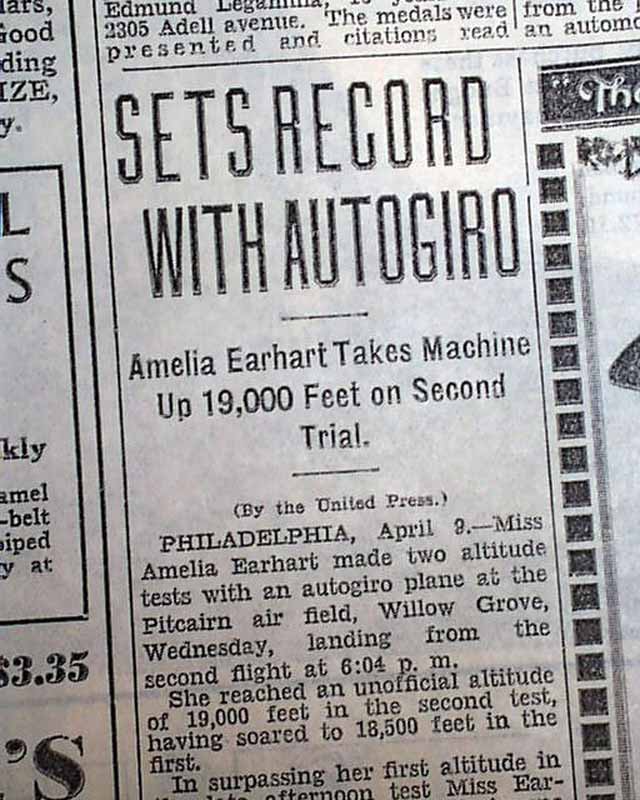 Amelia Earhart also broke many women's flight records. The first record she set was in 1922, which was the female altitude record of 14,000 feet. In 1928, she became the first woman to fly across the Atlantic as a passenger and she set and broke the female speed record in 1929 and 1930. In 1931, she became the first woman to fly an autogyro and set a height record of 18,415 feet. In 1932, she became the second person to fly across the Atlantic, and after that she flew many other record-breaking flights around the world. βββββββ