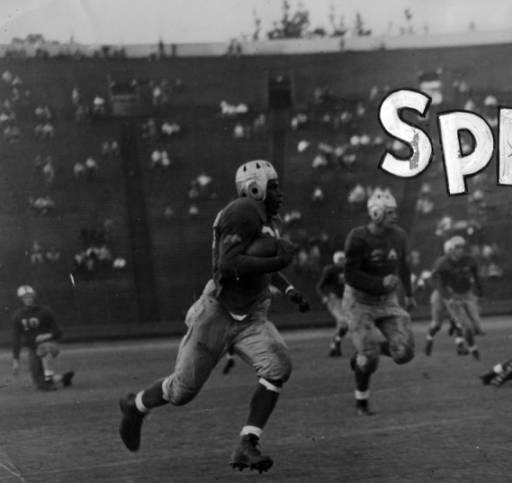Jackie Robinson holding a basketball at UCLA, 1948, DPLA.