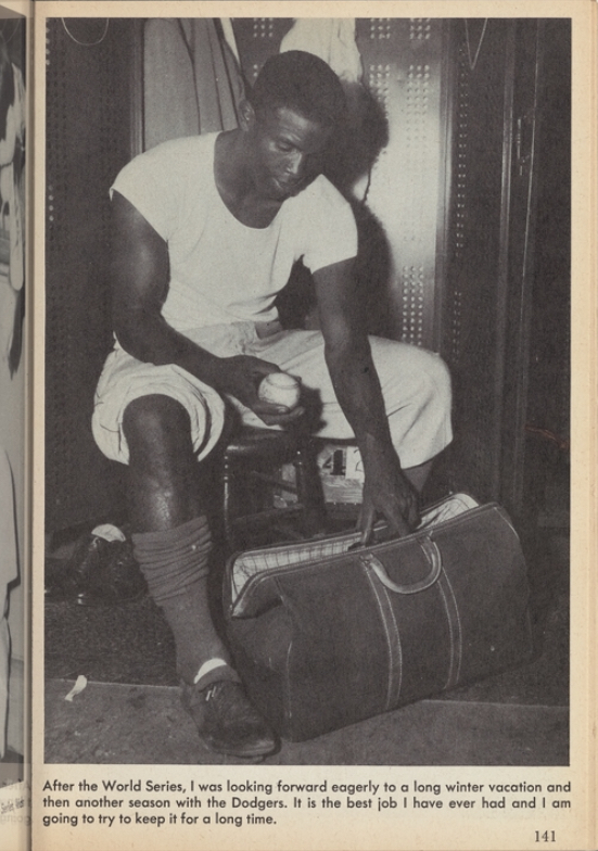Jackie Robinson putting his stuff away after practice, 1948, DPLA