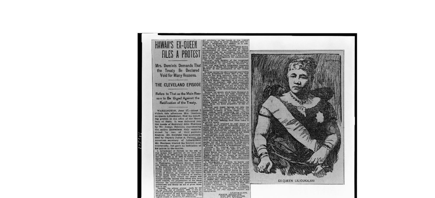 “Annexation of Hawaii.” Annexation of Hawaii | University of Hawaii at Manoa Library, https://libweb.hawaii.edu/digicoll/annexation/protest/liliu5.php. Accessed 24 January 2025.