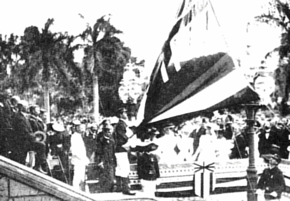 University of Hawaii at Manoa Library. “Hawaiian flag lowering at Iolani Palace, 8/12/1898.” University of Hawaii at Manoa Library, University of Hawaii, https://libweb.hawaii.edu/digicoll/annexation/images/pic7.php. Accessed 23 January 2025.