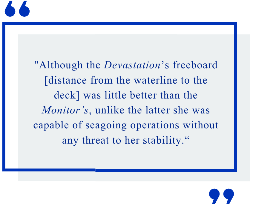 The turreted HMS Devastation (1871) was the first seagoing ship without sails.