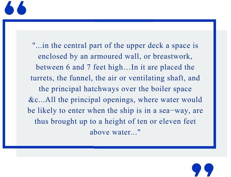 Invented in 1866, breastwork monitors improved upon monitor designs by adding a superstructure that protected the engine and turrets.