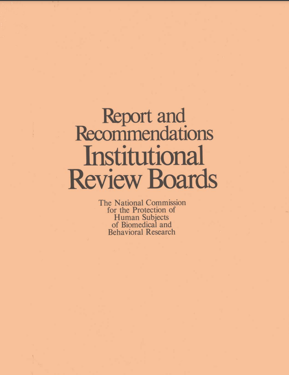 “REPORT AND RECOMMENDATIONS: INSTITUTIONAL REVIEW BOARDS.” 1 September 1978,