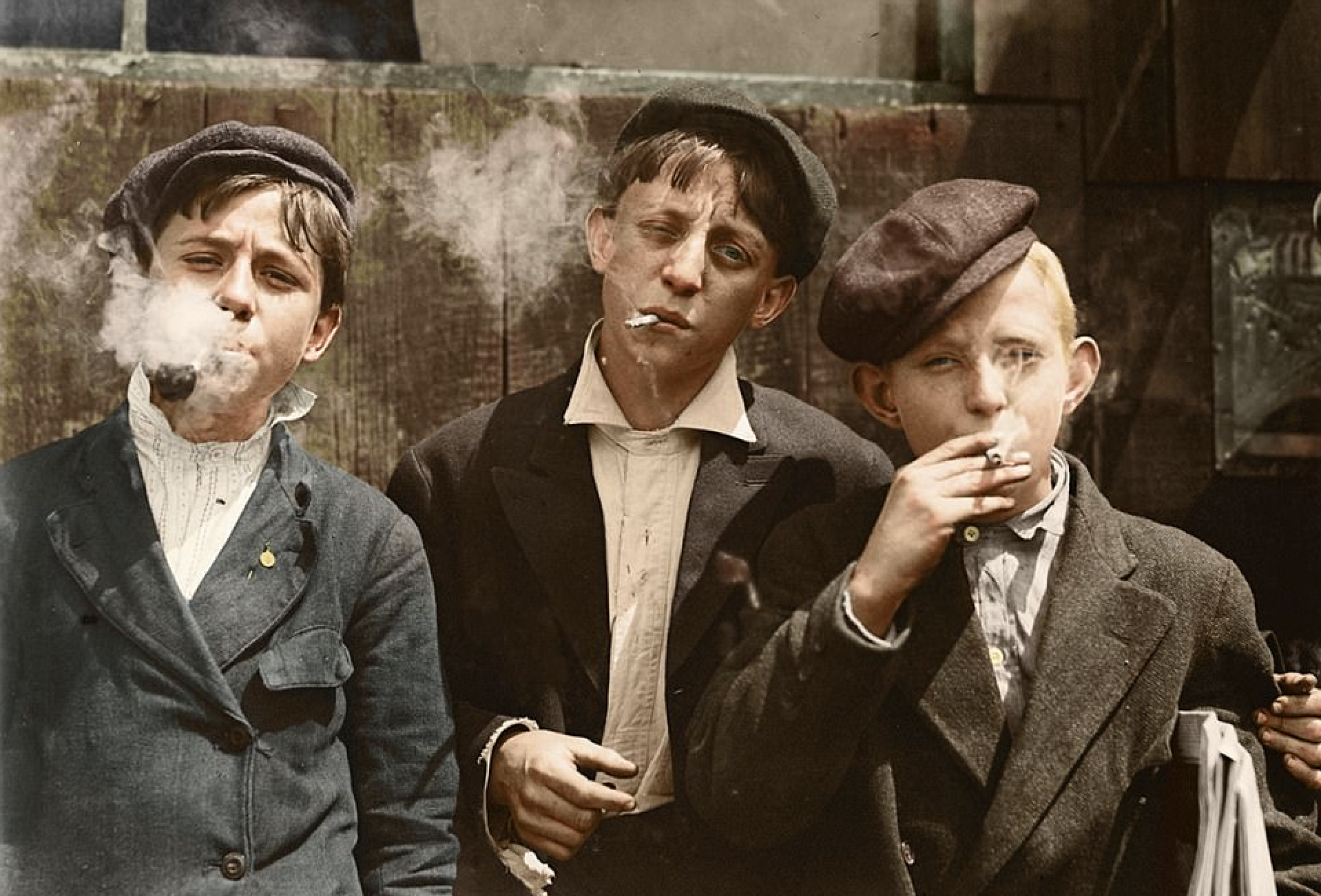 "Newsboys Smoking." (Hine, Fine Art America, 1910)