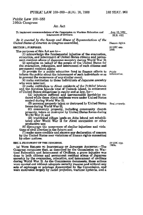 "Civil Liberties Act of 1988", August 10, 1988, Digital Public Library of America.