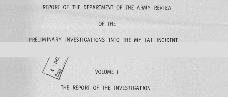 "Report of The Army Review of the Preliminary Investigations Into the My Lai Incident - Volume I - Report of the Investigation - 14 March 1970" United States Department of the Army