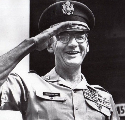 “Col. Oran K. Henderson salutes today during a break shortly after the opening of his court martial at Ft. Meade, Md.” AP WIREPHOTO
