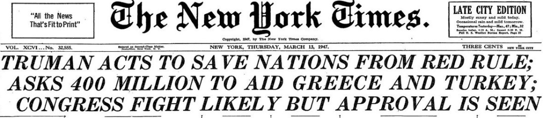 -President Harry Truman's Message to Congress, March 12, 1947.