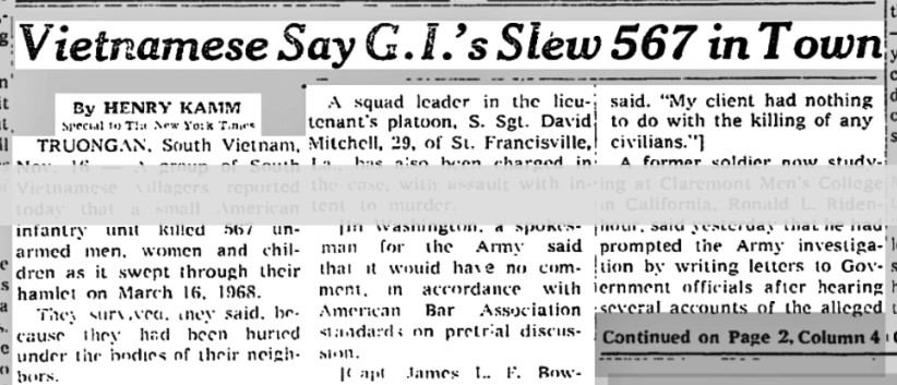"Vietnamese Say G.I.'s Slew 567 in Town" The New York Times