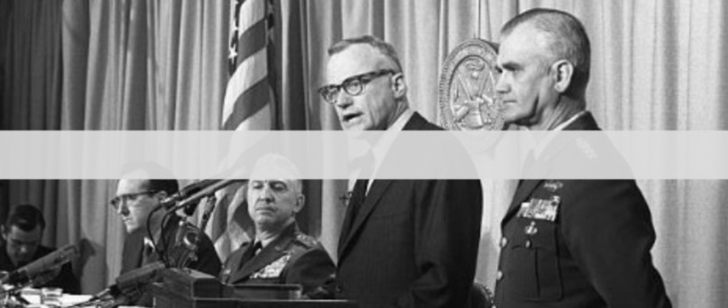 "Army Chief of Staff William C. Westmoreland during press conference. The Army filed court martial charges against 14 officers including Major General Samuel W. Koster, now superintendent of West Point, in an alleged cover-up of information concerning the My Lai massacre." Getty Images/Bettman Archive