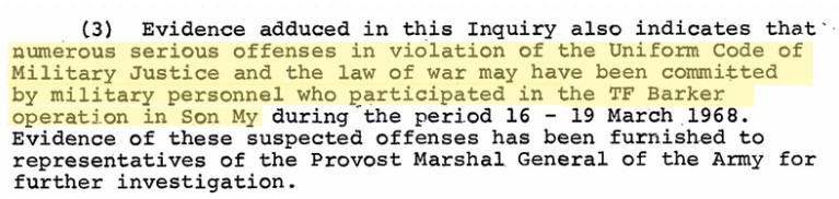 "Report of The Army Review of the Preliminary Investigations Into the My Lai Incident - Volume I - Report of the Investigation - 14 March 1970" United States Department of the Army