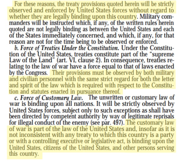 By ratifying these conventions, the American military was legally obligated to follow their policies.