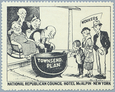 "It is estimated that the population of the age of 60 and above in the United States is somewhere between nine and twelve million. I suggest that the national government retire all who reach that age on a monthly pension of $200 a month or more, on condition that they spend the money as they get it. This will ensure an even distribution throughout the nation of two or three billions of fresh money each month. Thereby assuring a healthy and brisk state of business, comparable to that we enjoyed during war times"