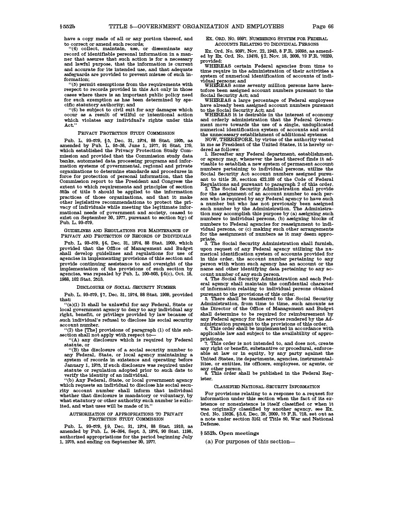 A page of the Privacy Act, 1974, Office of Privacy and Civil Liberties