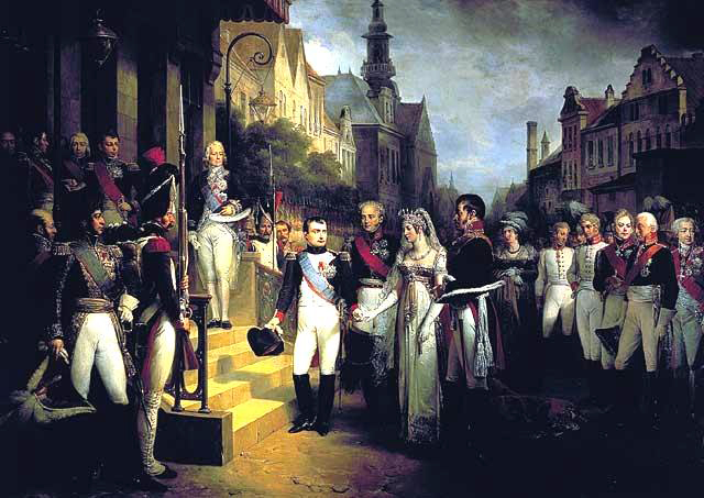 Portrait of Napoleon, Tsar Alexander I of Russia, and King Frederick William III and Queen Louise of Prussia in Tilsit