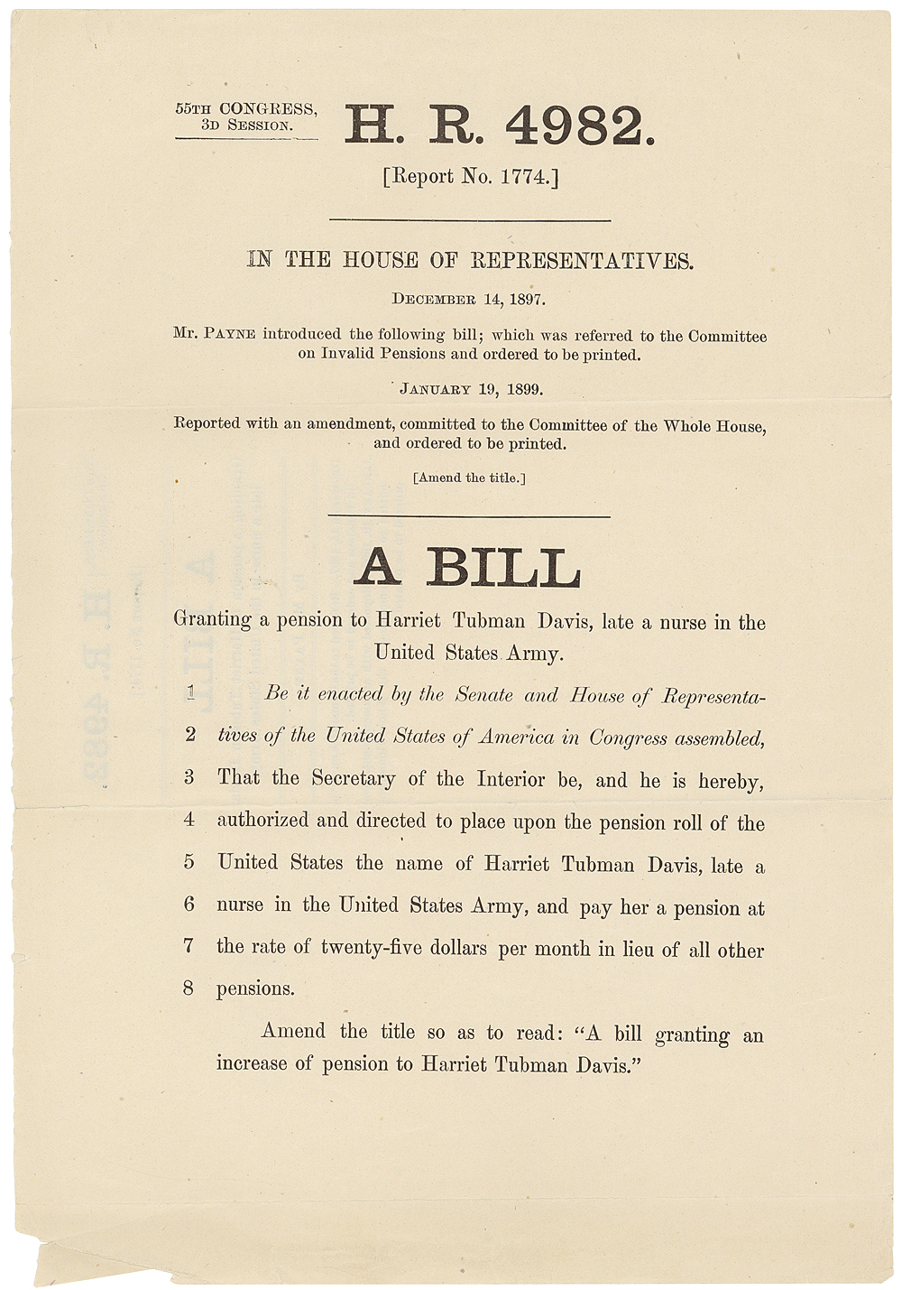 Harriet Tubman influenced many different aspects of contemporary rights and liberties. She took part in the women's suffrage movement (Dawson). Tubman played the role of spy during the Civil War and helped many slaves to freedom (Dawson). As well as all of this Tubman was a nurse for the United States Army, where she received a pension for her work in January of 1899 ("Claim of Harriet Tubman"). The pension that Tubman received was a payment of twenty-five dollars per month ("Claim of Harriet Tubman"). She was the hidden secret to more than just the people she freed but to the African Americans that were still enslaved, not because she was an African American who was making local, national and global news but because she helped people to freedom that would then be able to come back into slavery territory and free the others that were still enslaved. These actions that Tubman took to stand up for her freedom and the freedom of others around her influenced government leaders to pass the Thirteenth Amendment. In part of Tubman's hard work in the Underground Railroad and Civil War, she influenced and reformed the liberties and rights that are given to American citizens today.