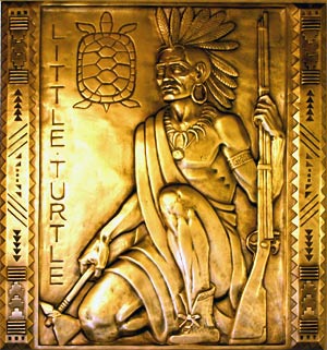 Little Turtle was an important part of the Natives’ lives. He was important because he won battles against the American soldiers, taught the Native Americans to farm, and signed the Treaty of Greenville. He also tried to protect his land when the other tribes sold it (Turtle). He won one battle against the American soldiers, St.Clair's defeat, in which his army took down 630 officers and the Americans lost thirty-two percent of their manpower (Rafert 52). Little Turtle ended the war when he signed the Treaty of Greenville (Ray). Little Turtle ended hostilities, traded prisoners, and made new borders when he signed the Treaty of Greenville( Ray). The new borders took most of the Native land (Turtle). Little Turtle had to request farming materials because the natives could no longer hunt and follow the animals (“I. Address of Little Turtle”).