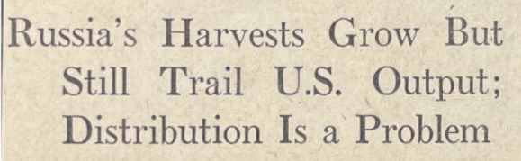 "Soviet collective and state farms report good crops in spite of a bad drought in some regions of the country." (USSR Magazine, Sept. 1959)