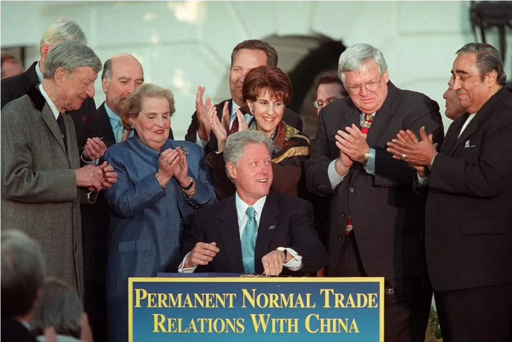 "On October 10, 2000, just around three months before his second and final term in office was to end, President Clinton signed The China Trade Bill into law. That law granted China even further access to American technology." AFP / Mario Tama