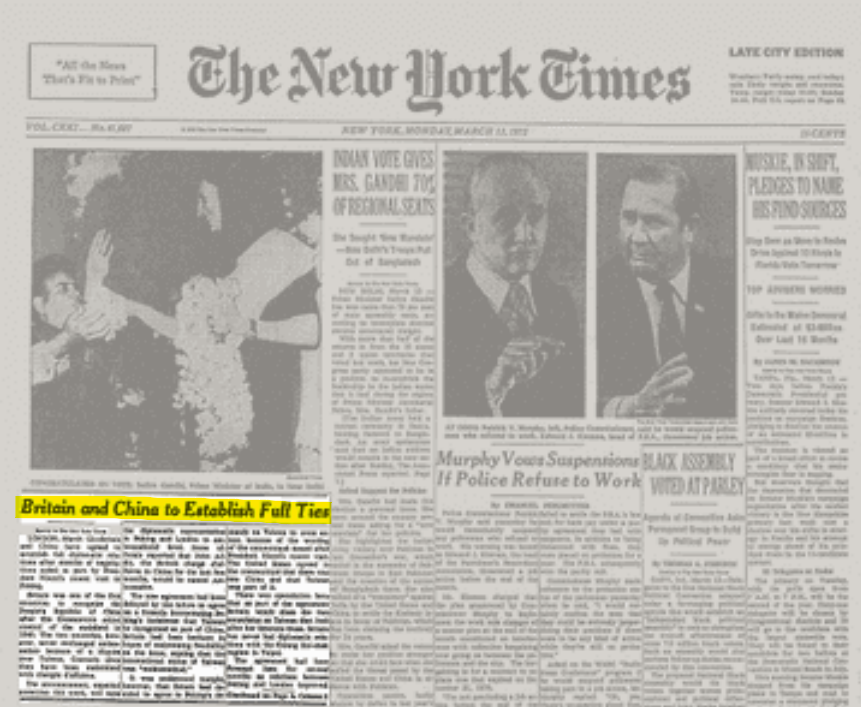 Britain was one of the first nations to seek relations with China after Nixon's visit. These ties lead to the eventual Sino-British Joint Declaration in 1982.