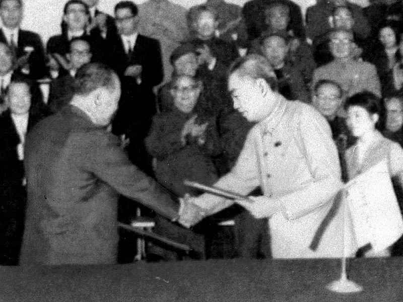 "Kakuei Tanaka and Zhou Enlai shaking hands after signing the Japan-China joint communique", Yomiuri Shimbun file photo