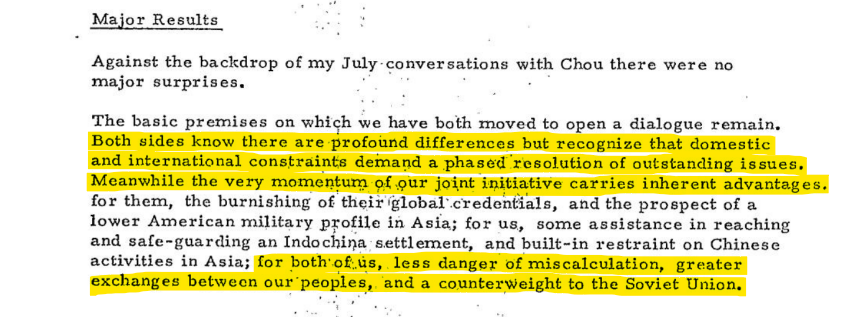 “It is certainly in our interest, and in the interest of peace and stability in Asia and the world, that we take what steps we can toward improved practical relations with Peking."