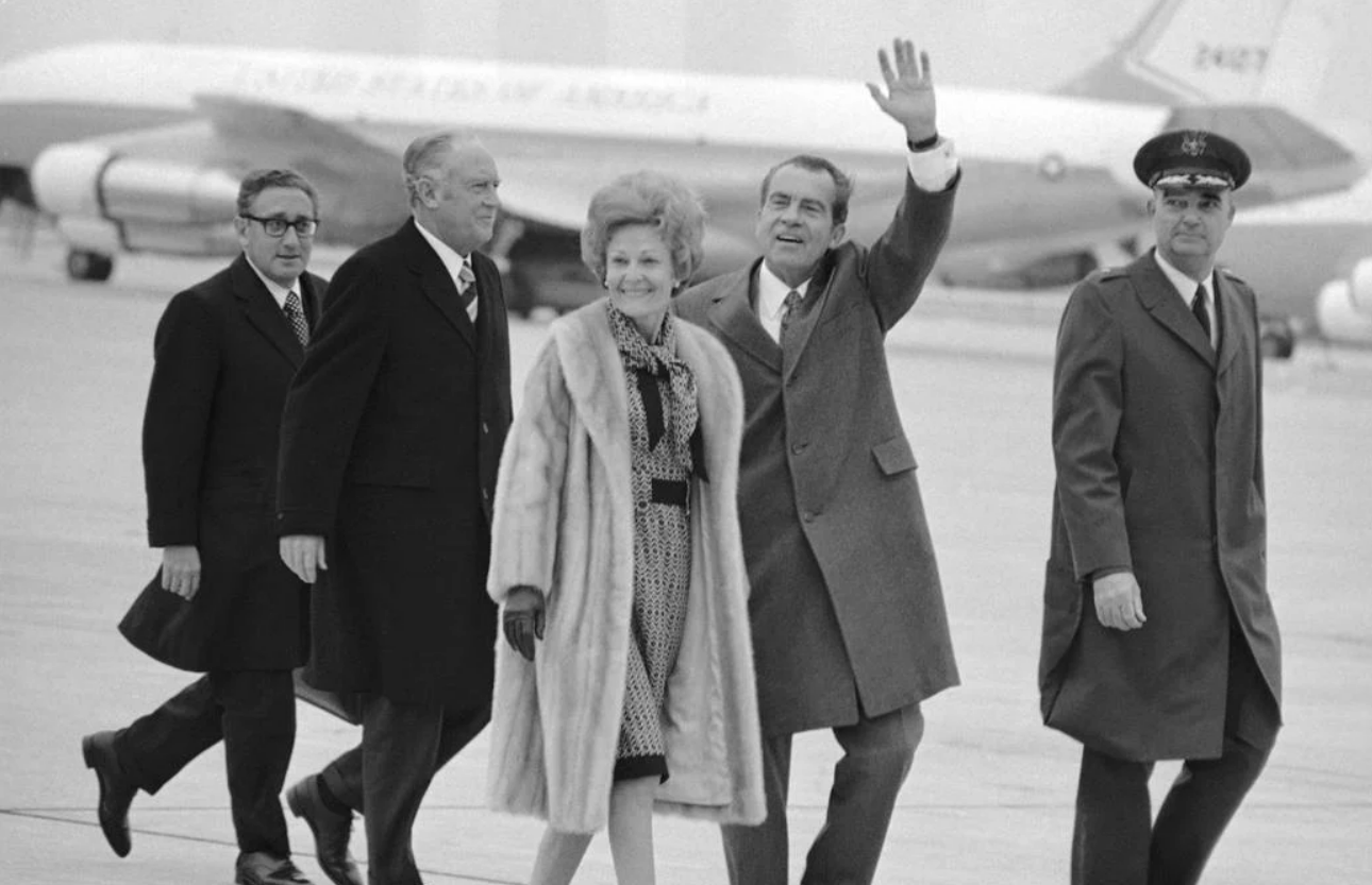 "President Nixon waves to those gathered at Andrews Air Force Base near in Washington on Feb. 17, 1972 to see him off on his historic trip to China." Associated Press Photos