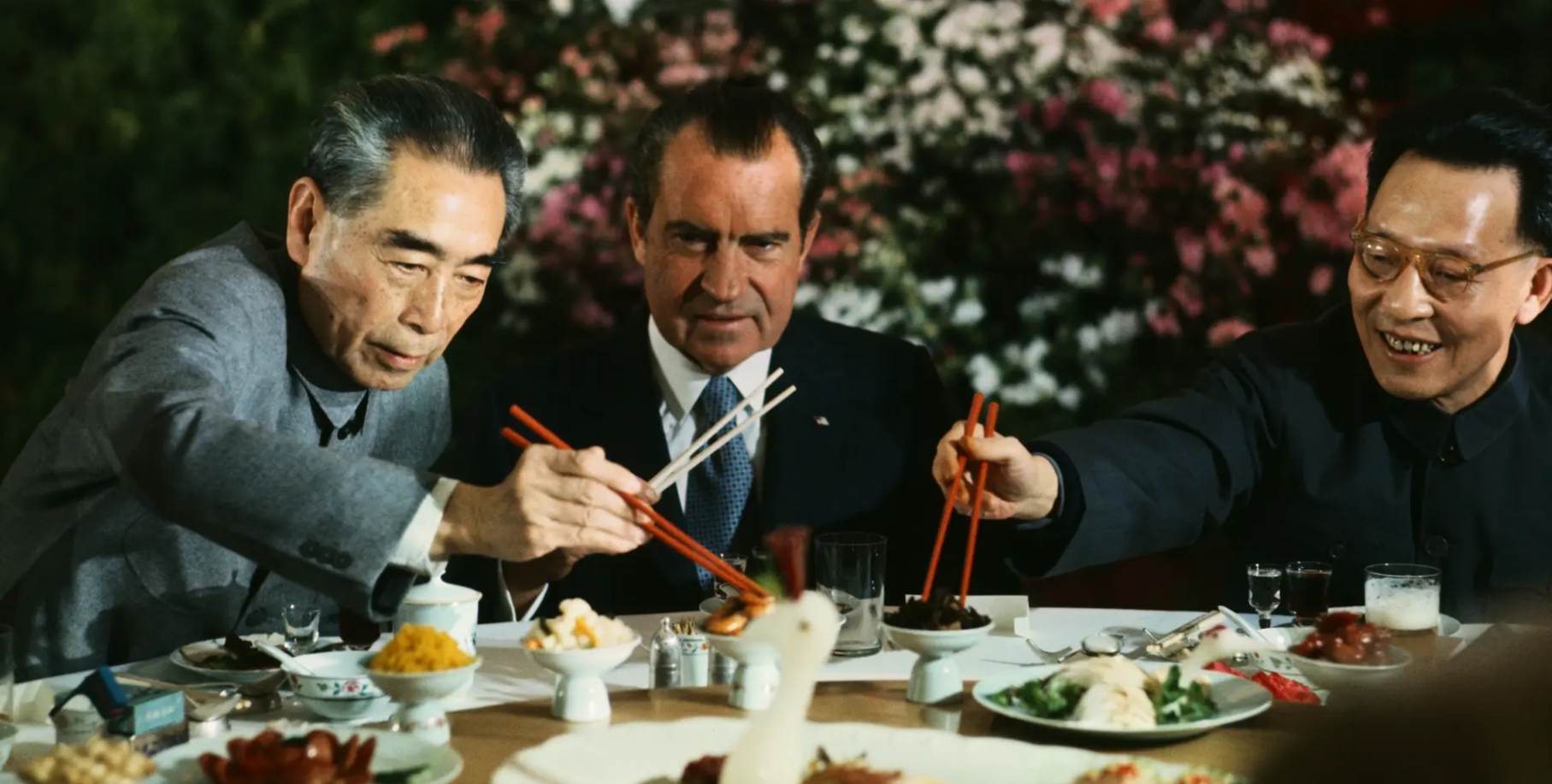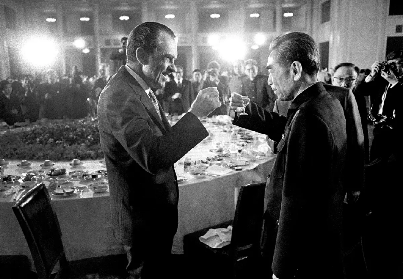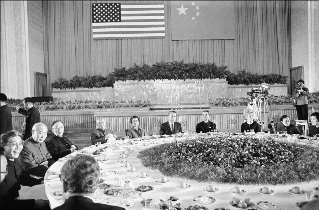 "Chinese Premier Zhou Enlai, Richard Nixon and Shanghai Communist Party leader Chang Chun-chiao attend a farewell banquet for the US president at the end of his 1972 visit to China." Bettmann Archive/Getty Images