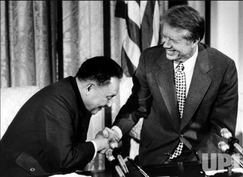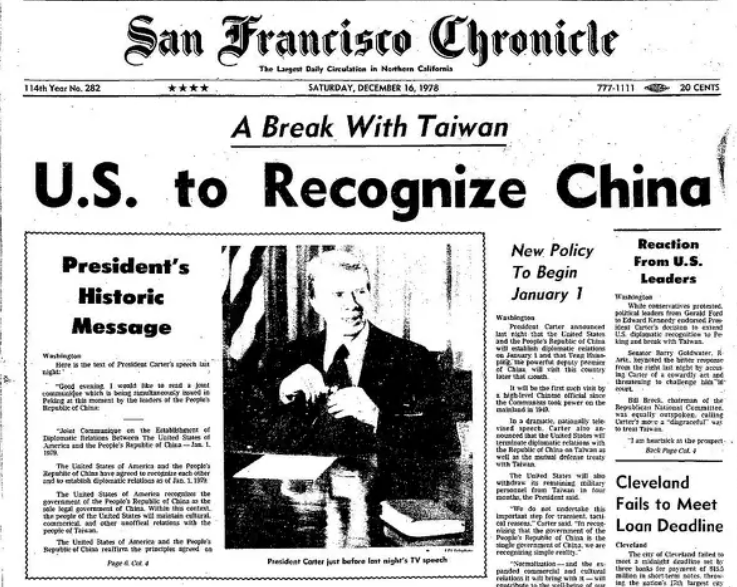 "Jimmy Carter and Deng Xiaoping shake hands following a ceremony at the White House." UPI Newspictures
