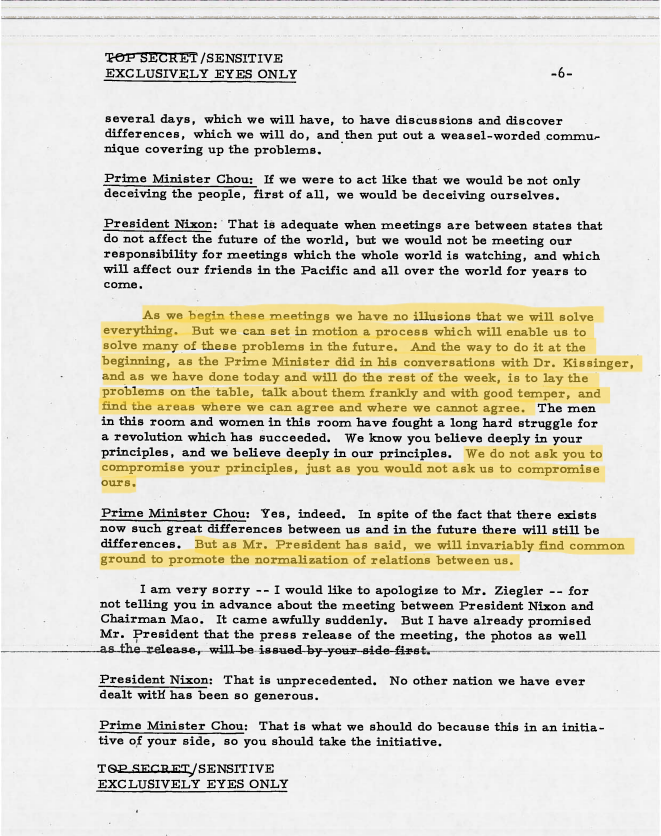 “Memorandum for the President's File Discussion with P.M Chou Enlai, February 21, 22, 23, 24, 25, 26, 28, 1972”, Richard Nixon Library