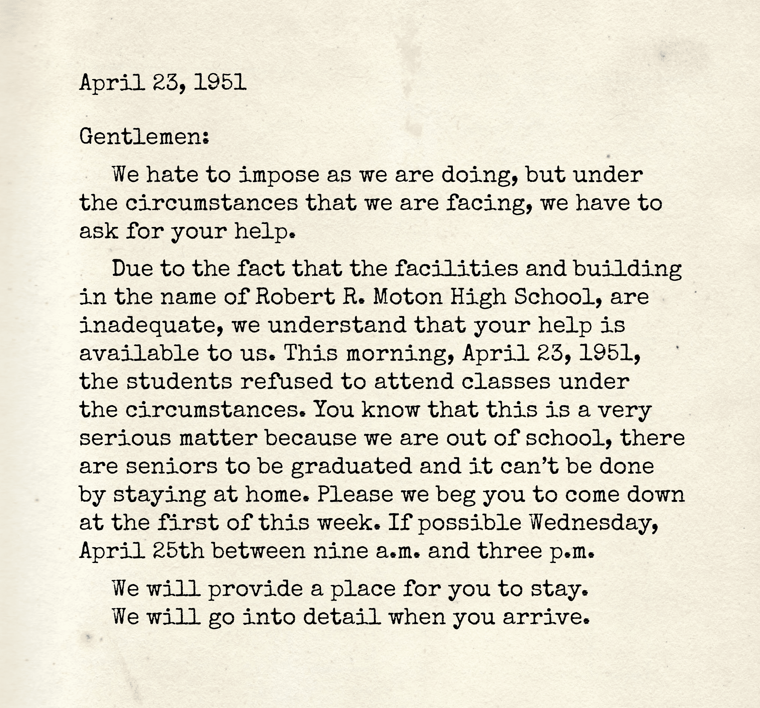 Letter Courtesy of The Moton Museum (https://motonschoolstory.org/gallery-ii/)