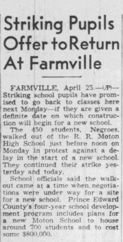 On April 23, 1951, Barbara Johns, a 16-year-old student at Robert Russa Moton High School, led a student strike to protest the poor conditions of her school. Leading up to the strike, Johns worked with a small group of trusted classmates to secretly organize a walkout. These students tricked the principal into leaving and called an emergency assembly, where John gave a powerful speech, encouraging 400 students to walk out and refuse to return until conditions improved. They demanded a better school building, equal treatment, and justice. The protest lasted for two weeks and even drew national media attention.
