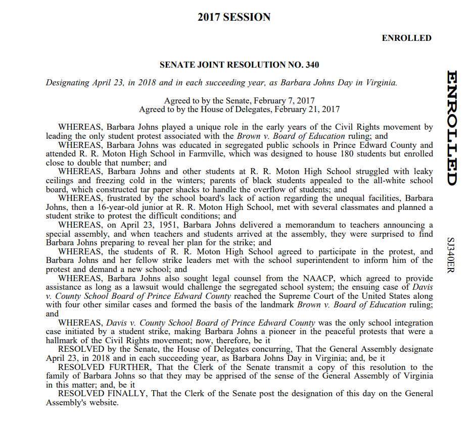 “SENATE JOINT RESOLUTION NO. 340.” 2017. Virginia.gov. Virginia Legislative Information System. February 20, 2017. https://legacylis.virginia.gov/cgi-bin/legp604.exe?171+ful+SJ340ER+hil.