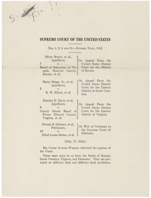 Brown v. Board of Education of Topeka, Opinion; May 17, 1954; Records of the Supreme Court of the United States; Record Group 267; National Archives.