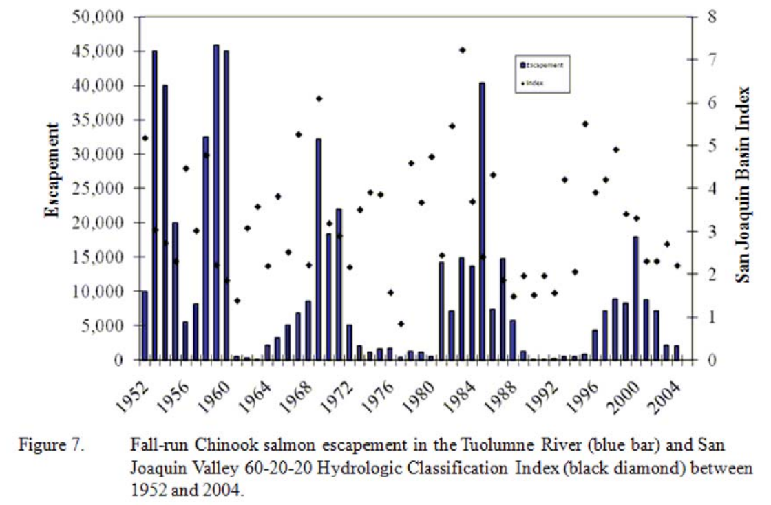 “The Tuolumne River has not hosted spring-run Chinook salmon since at least 1959, due to low flows and high water temperatures in the summer.”