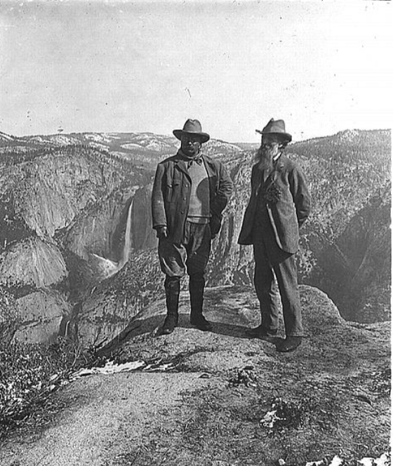 (Theodore Roosevelt and John Muir on Glacier Point,Yosemite Valley, California.1906, Library of Congress (93503130))