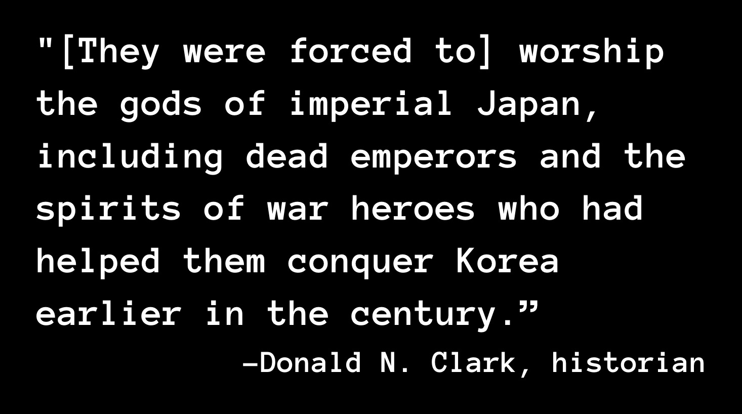 Once Japan was in control they did everything they could to wipe Korea's history and culture: burned books, documents, and historical buildings. The Korean people had to take on Japanese surnames, were forbidden to speak Korean, and were forced to work for Japan (Blakemore).