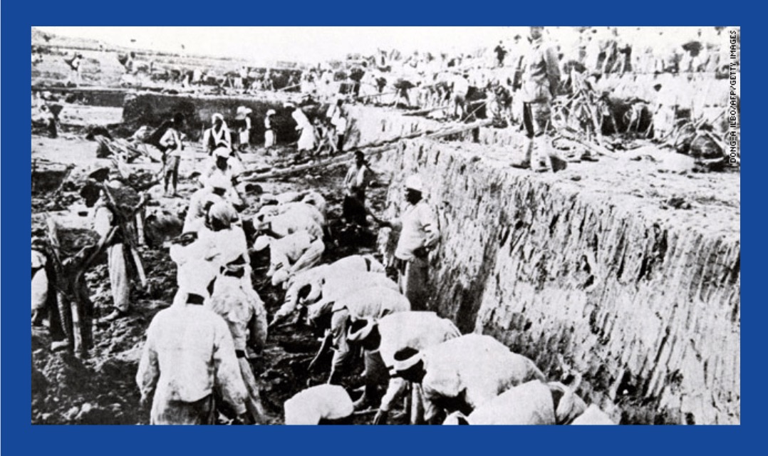 Forced manual labor of Koreans in gold mine under Japanese solider supervision. 1937, CNN